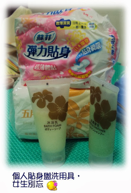 6.清潔用品1 套濕巾、衛生紙、清潔皂等 (女生請加衛生棉、護墊) 。 | ||